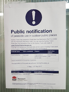 There is a Public Notice to warm Mount Druitt commuters that NSW Sydney Trains will be using a pesticide.Refer to below notification:
